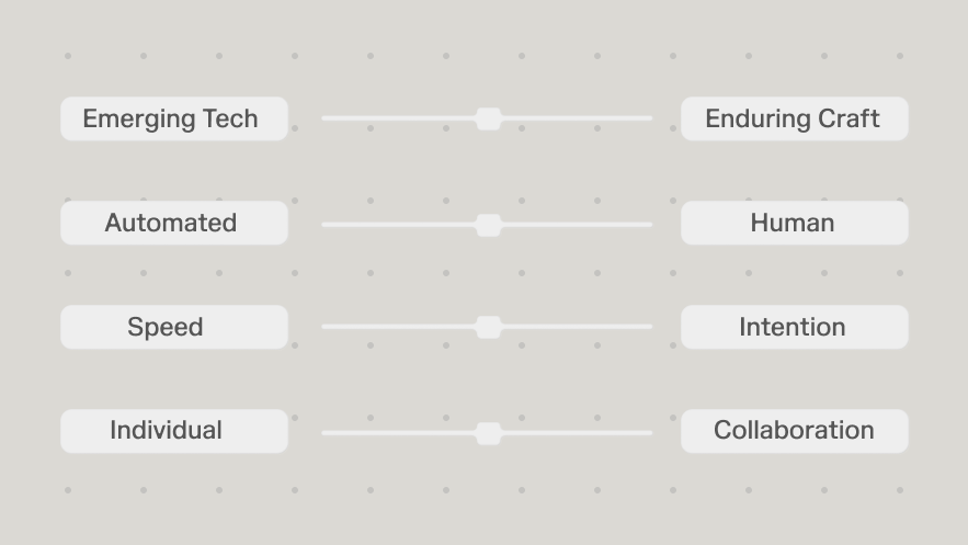 But speed was never the point for studios with real aesthetic standards. The fear shouldn’t be about falling behind, but becoming generic. It’s the slow erosion of the thing that makes your work worthwhile—the accumulated taste, judgment, and intention that lives in your team and took years to develop.