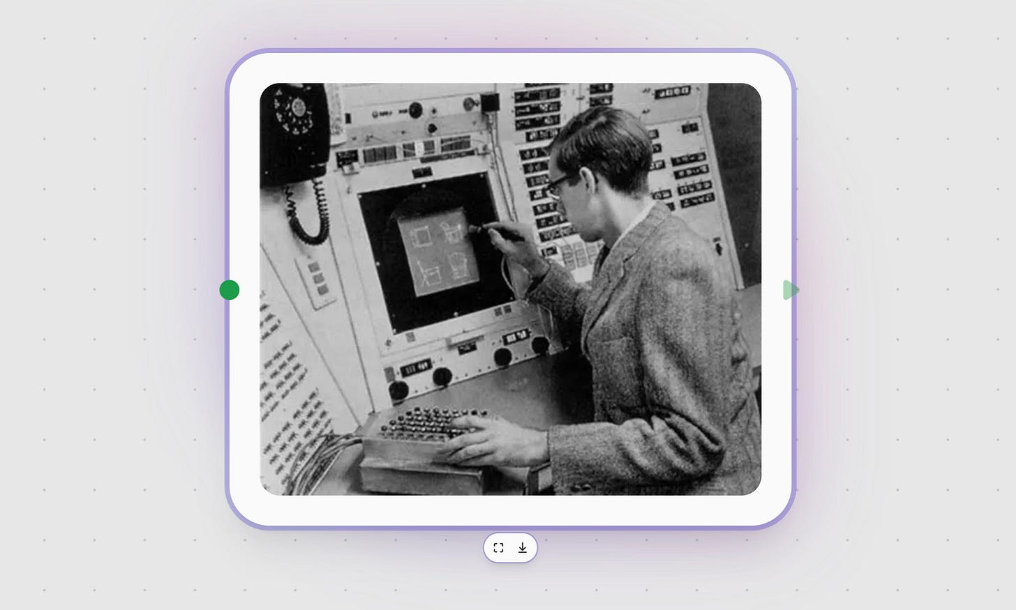 Sixty years later, a designer in Brooklyn drags nodes across an Adobe canvas, orchestrating AI models to generate images. In San Francisco, Figma executives sign acquisition papers worth hundreds of millions for a startup built on this same paradigm. ComfyUI workflows are viral on Reddit. Every major creative platform is racing to ship or acquire canvas-based workflow builders.